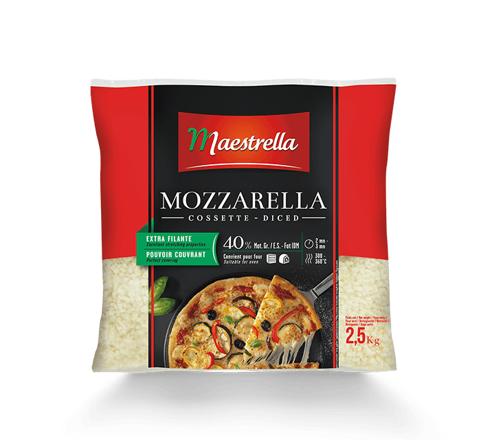 Mozzarella au goût doux et à la texture fondante, offrant un excellent filant à la cuisson. Idéale pour pizzas et plats gratinés, elle assure un parfait équilibre entre onctuosité et légèreté